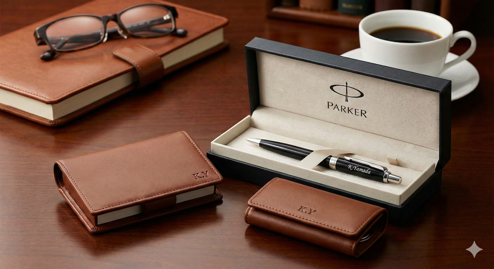 - ボールペン:パーカー(PARKER)などの高級筆記具にさりげなく名前を刻印。