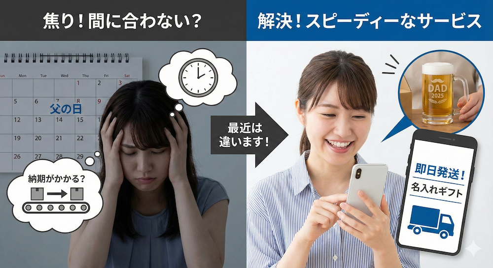 「父の日まであと数日しかない!」「オーダーメイドは納期がかかるから諦めるしかない?」